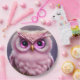 Prato De Papel Coruja Rosa Fluffy com Corações