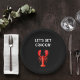 Tema náutico, verão e comida marítima. Uma lagosta vermelha sobre fundo preto. Citação: o Vamos fica rackeado