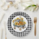 Uma Linda Placa De Papel De Padrões De Gingham Preto E Branco, Projetada Com Vagão De Brinquedos Vintage Com Girassóis E Abóboras.