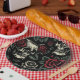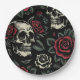Prato De Papel Crânios & Rosas Vermelhas Floral Gótico