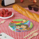 Um design com um monte de crianças correndo num arco-íris colorido. Este design parece realmente eficaz nestas placas de papel