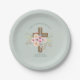 Prato De Papel Cruz Floral Rosa Rosa Bautizo Bautismo Baptismo