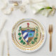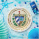 O casaco de armas de Cuba é impregnada numa forma falsa de círculo dourado, e metido entre uma coroa falsa de ouro.