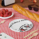 Um prato de celebração com uma reviravolta. Design de aparência desenhada à mão. Preto, vermelho, branco, cinza. O texto é personalizável.
