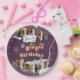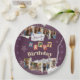 The design allows you to upload 8 personal photos and personalize the name, creating unique party plates that celebrate meaningful moments. The vibrant violet and plum color palette gives the plates a trendy aesthetic perfect for Sweet 16 birthday parties and teen celebrations.