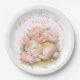 Cute bunny rabbit with pink blush peony flowers watercolor party paper plates. Perfect for a baby girl shower.