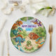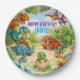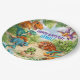 Bring your child's dinosaur-themed birthday party to life with these vibrant and playful paper plates! This cheerful design features a variety of cute cartoon dinosaurs surrounded by tropical greenery, creating a fun and inviting prehistoric scene kids absolutely love. To create a fun and coordinated party look pair them with matching cups, napkins, stickers and other decorations for a fun and unforgettable birthday party for your child. The name and birthday message are easily customized. Available in other sizes.