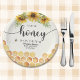 Lindo diseño para tu baby shower de niña o niño con una Hermosa Tematica de Flores de Girasol y abejas con la Frase " A LITTLE HONEY IS ON THE WAY, Personaliza este lindo plato con los datos de tu baby shower y dale un toque especial y elegante a tu celebracion.