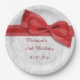 Placas de papel da festa de aniversário elegante do 70 para mulheres. placas da festa de aniversário do 70 para aniversários. Fundo branco bonito da cor damasco com um arco e uma imagem vermelhos românticos bonito, à moda da fita. Estas placas de papel do partido feito sob encomenda glamoroso, chique, elegante belamente são sofisticadas e são são perfeitas para todas as idades. Todo o texto é inteiramente customizável cumprir suas exigências. NOTE POR FAVOR: Todos os produtos em Zazzle têm imagens impressas do plano. Imagens do arco e da fita compradas de digital-design-por-Elena. Se você precisa algum auxílio que personaliza seu produto me contacta por favor através de minha loja e eu estarei feliz ajudar.