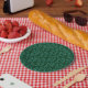 Prato De Papel Dark Green Background with Teal Botanical Leaves