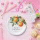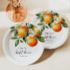 Este prato de papel temático cítrico apresenta gráficos de laranja em aquarela e uma fonte moderna. É perfeito para uma chuva de noiva temática "apertão principal" e você pode combiná-lo com qualquer coisa da coleção BRINLEY para uma aparência coesa.