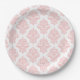 Prato de papel de festa rosa pastel Damask