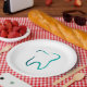 Chapas de papel com ilustração de um dente dentário. Desenhado com um contorno de gradiente verde.