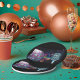 Uma performance de disco com um microfone e uma bola de disco. Este design parece realmente eficaz nestas placas de papel