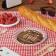 Sirva seus convidados nessas placas de CHURRASCO personalizadas. Estas placas de papel apresentam madeira rústica sobre fundo de gingham vermelho e branco, luzes de cordas de mason jar e letras de CHURRASCO de marque vermelha. Perfeito para o seu CHURRASCO de quintal.