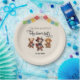 Celebre a chegada do seu pequeno com a nossa vibrante e cativante placa de papel de Chá de fraldas inspirada pelo mexicano Alebrije! Esta design única e artística é uma verdadeira fiesta para os olhos, misturando o charme caprichoso dos alébrios mexicanos com o espírito exuberante de uma celebração de fiesta. No coração deste prato, você encontrará três ursos encantadores, cada um intricadamente desenhado no estilo dos tradicionais elébrios mexicanos. Estes ursos são uma explosão de cor e criatividade, adornada com padrões intrincados, matizes vívidos e expressões vivas. Eles trazem um toque de arte popular mexicana para sua celebração, simbolizando a alegria e a entusiasmo de acolher seu pequeno. Esticando o topo do guardanapo, uma faixa dinâmica e colorida de fiesta dá o tom para a celebração do seu chá de fraldas. Apresentando bandeiras de papel picado em uma medalha de formas e padrões, acrescenta um toque festivo que promete uma reunião inesquecível do estilo fiesta. As palavras "Chá de fraldas Fiesta!" em fontes divertidas anunciam a ocasião alegre.