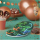 Este design de dinossauro é excelente para o aniversariante na sua vida. Deem-lhes um dia de dino-ácaro com este design dino com o tema de um trex, triceratops, brontosauro e raptor.
