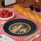 Conjunto de oito placas de papel de 9 polegadas com uma imagem preta e dourada de Dionísio, deus grego de vinho e fazer de vinho e loucura ritual, e os satyres.