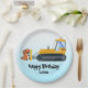 Prato De Papel Diversão de um trator de dinossauro Fazenda Escola