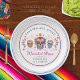 Celebre qualquer festa de aniversário de marco ou Dia de los muertos com estas placas de festa de aniversário de açúcar mexicano, únicas e elegantes, de cor Fiesta. Não há nada ocupado nesta design que comemora o tema Mexicano Calavera para o seu dia de festa morta! Personalize o texto para ler o que quiser e faça com que esta mesa de festa de aniversário do crânio seja a sua hoje!