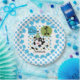 As placas de papel do primeiro aniversario azul da vaca são divertimento, colorido, excelente para os miúdos que amam vacas e animais de fazenda e estão tendo uma vaca ou cultivam a celebração do primeiro aniversario do tema! Caracteriza uma vaca preto e branco bonito que veste um chapéu pontilhado polca do partido, verde e os pontos azuis, balões de azul e de verde que me lê são 1, um anel azul decorativo, e bolinhas azuis grandes em uma beira branca afiam. Você pode facilmente adicionar o nome da primeira criança do aniversário para personalizar estas placas de papel. Procure os guardanapo, os t-shirt, os botões, as bolsas, e o mais de harmonização!