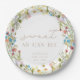 Descarregue seus amigos e entes queridos e incorpore o tema do abelhão floral da mamãe-a-abelha em seu cenário de mesa com este simples, moderno e elegante conjunto de placas de papel com tema de chá de fraldas. Este design apresenta flores silvestres de aquarela e abelha sobre fundo branco com tipografia de ouro claro.