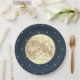 Este chic e moderno " Dois segundo da Lua " / segunda placa de papel de aniversário apresenta um fundo azul marinho com lua de cheio de ouro falso e estrelas de ouro falso. Personalize-o para as suas necessidades. Você pode encontrar produtos correspondentes na minha loja.