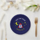 Este querido Dois O prato de aniversário da Lua é perfeito para uma festa de segundo aniversário para um menino ou uma menina. Ele apresenta um pequeno foguete voando para a lua e estrelas.