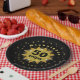 Personalize facilmente o brilhante Sol brilhante dourado com o nome e a idade. O padrão do Sol e das estrelas faz um excelente procurar uma elegante 50ª festa de aniversário.