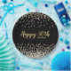 Adicione seu próprio toque especial a este elegante design de placa de festa de aniversário personalizada apresentando ouro brilhante e confete prateado sobre um fundo preto, a tipografia moderna com as palavras "Happy 50th" e o nome da aniversariante.
