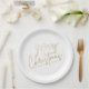 Prato De Papel Dourado Feliz Natal em Branco