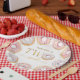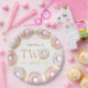 Prato De Papel Dourado rosa Duas Doces Rosquinhas, Placas de Aniv