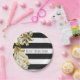 Prato De Papel Dourado Tone, Preto Floral e Branco, com Strike