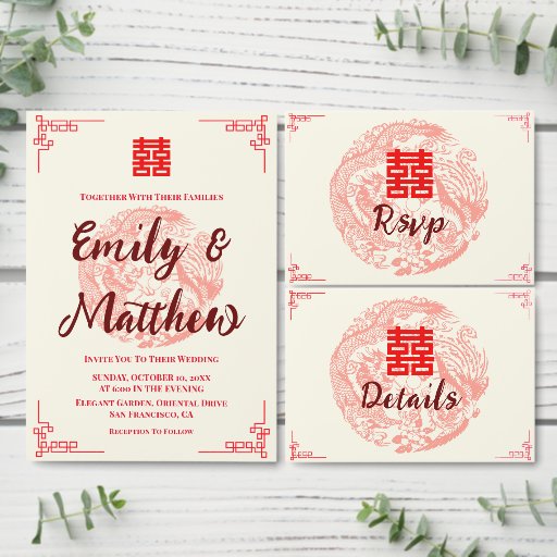 Dragão chinês e Fênix são o símbolo tradicional do casamento chinês, representando a união harmoniosa da noiva e do noivo. Personalize os convites com seus nomes, data do casamento e outros detalhes. Você também é bem-vindo para me alcançar para criar um design que é exclusivo seu.