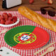 Le drapeau du Portugal est composé de 2 bandes verticales vert et rouge et d'une sphère armillaire centrée entre les deux bandes.