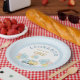 Serve party treats in style with these dump truck first birthday paper plates! Featuring a cute truck carrying gifts and balloons with soft baby blue gingham pattern and dotted borders and the text “Rolling into ONE,” they’re perfect for a boy’s first birthday party. Fully customizable with name and age, these plates add a fun, coordinated touch to your celebration.