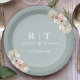 Prato De Papel Dusty Blue Botanical Boho Elegante Monograma de Ca