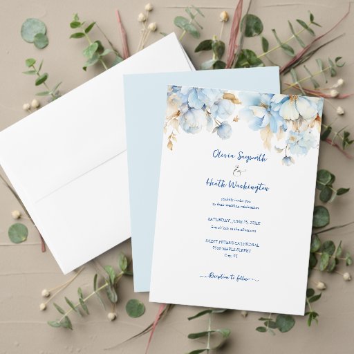 A Dourada Floral Azul Dusty é uma combinação de cores particularmente bonito e etérea. Uma borda floral horizontal em torno do rótulo central para chás ou casamento. Pares únicos de fontes Boho levemente em tons azuis-claros e dourados.