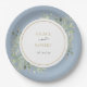 Prato De Papel Dusty Blue Greenery Folhagem Casamento Dourado
