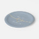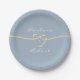 Adicione um toque moderno e romântico ao seu casamento com esta empoeirada placa de papel azul com um coração de corda dourada, uma escrita branca elegante e nomes de casal personalizáveis. O fundo azul macio é perfeito para primavera, verão ou casamentos costeiros. Ideal para recepções, jantadas de ensaio, ou brunches de noiva.