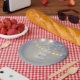 Russo país, noite de verão, pratos de papel azul empoeirado para casamentos