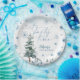 Placas de papel de aniversário da Terra Marinha azul com pinheiros e flocos de neve com aquarela. Confira toda a coleção: https://www.zazzle.com/collections/blue_winter_wonderland-119085268121021626