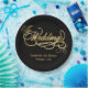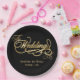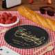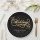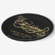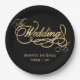 A formal, elegant black wedding paper plate with faux gold calligraphy script.