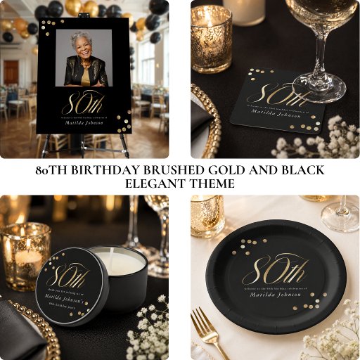 80th Birthday Brushed Gold and Black Elegant ThemeCriado por Yini Cheah