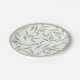 Elegant paper plate design with hand painted watercolor pattern featuring pale sage green leaves on a clean white background.