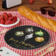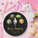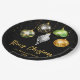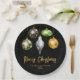 Celebrate the season with bold style and personalized charm. This festive paper plate features five hanging ornaments against a sleek black background, each showcasing a unique pattern - from wild leopard and zebra prints to lush tropical leaves and shimmering giraffe print. Scattered golden stars add a touch of sparkle, while the customizable text lets you add your family name and year for a truly personal holiday touch. Perfect for festive gatherings, office parties, or upscale winter events.