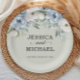 Prato De Papel Elegante Dusty Blue Ivory Floral Sage Verde