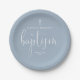 Prato De Papel Elegante Moderno Script Batismo Azul Poeirento