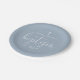Estes pratos de papel para batismo com escrita elegante em azul poeirento podem ser personalizados com todas as informações da sua celebração especial. Desenhado por Thisisnotme©