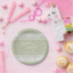 Placas de papel de casamento elegante noiva verde com renda branca. Personalize com os nomes do casal, data do casamento e local do casamento.